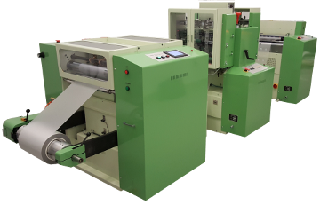 The PC Line comprises a DC 8406/SPU model combining our conventional unwind with a sprocket punch station to take rolls of polycarbonate, unwind, sprocket punch and feed over a photocell control unit to the first DC 8614 H4 model.