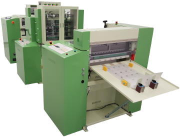 With four heating heads, Sensors for positioning element not on the dies but with the 4 sensors mounted outboard in front of the head. Knife bar is included for separation of foil from PC material. Includes a tandem control unit to interface with following machines.