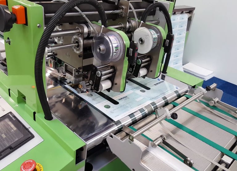 Designed for the application of Embedded DOVID registered Hologram and Kinegram images on documents requiring high security anti-counterfeit measures such as Passports, ID cards, Visas, Certificates, Cheques, Bank Drafts, Event & Travel Tickets, Gift Vouchers, Scratch Cards, Product & Brand Labels.