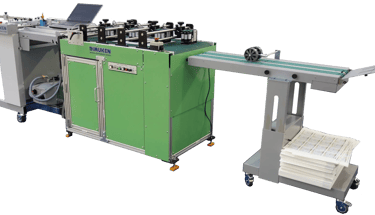 Fitted with a Deep pile feeder and Stacker delivery the system can accept sheet widths from 120mm wide up to 520mm wide with a maximum sheet length of 720mm.